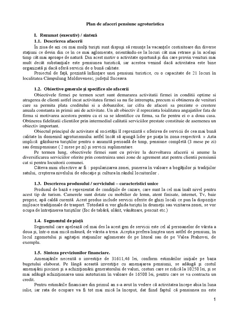 Plan De Afaceri Pensiune
